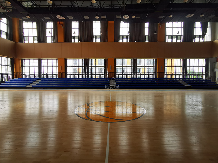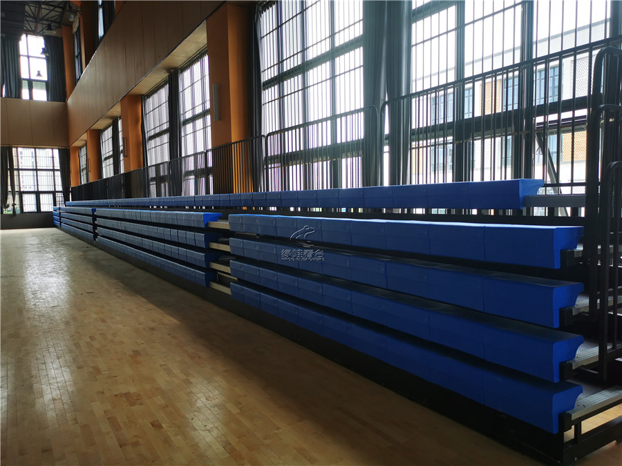 綠蛙看臺為江蘇響水縣幼兒園籃球場館加裝了四層活動伸縮看臺座椅
