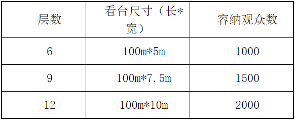 5、看臺層數(shù)有多種選擇,長度可根據(jù)現(xiàn)場的尺寸確定,可容納觀眾數(shù)量大。