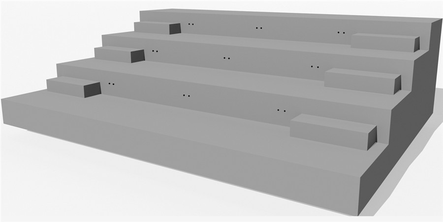 1)量出需要安裝座椅的區段的尺寸,一般是指固定看臺踏步通道與踏步通道之間的區間,然后對照設計圖紙,看需要多少個支架腿,分布好(FrogSport)。